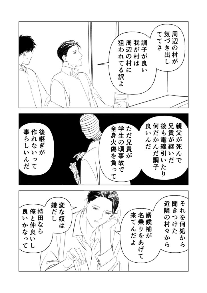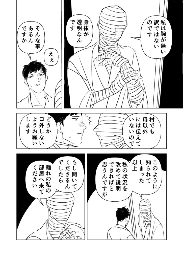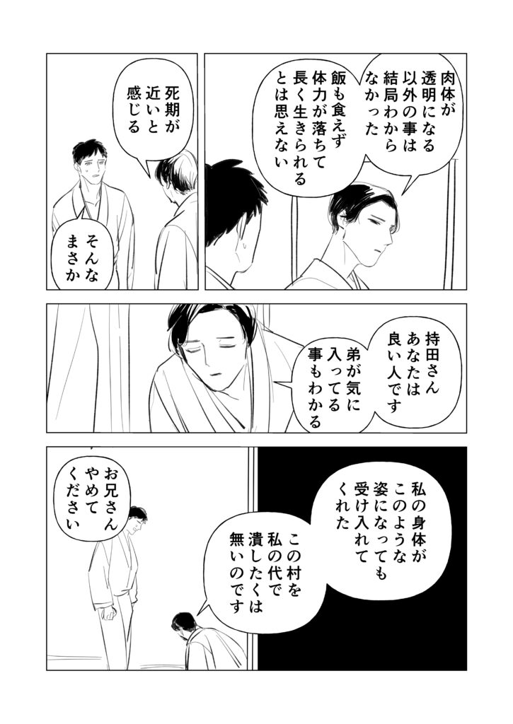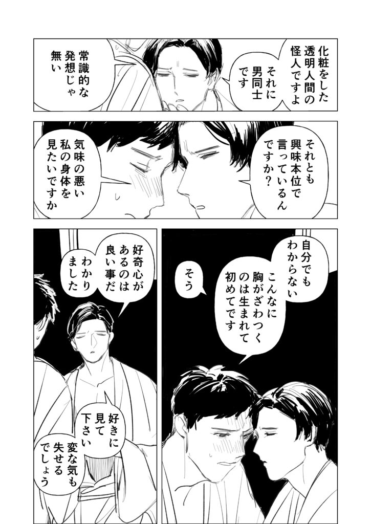 サラリーマン(変態)×透明人間(村長)のBL(?)漫画です。
