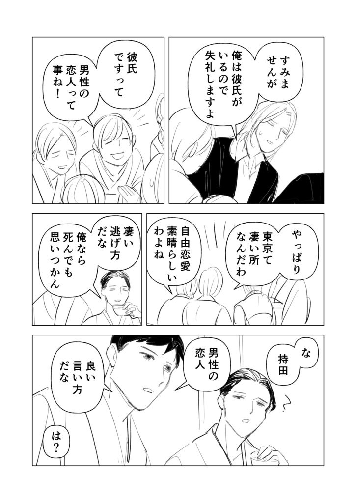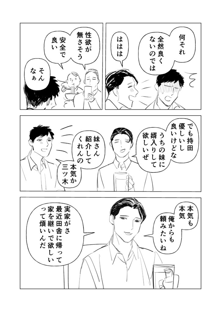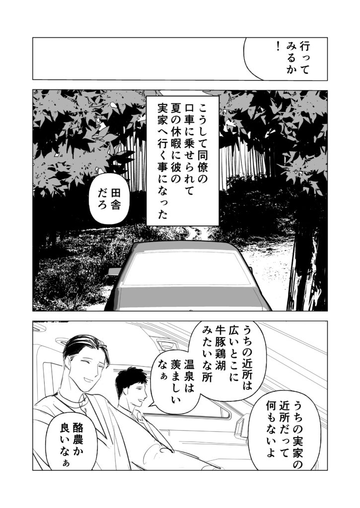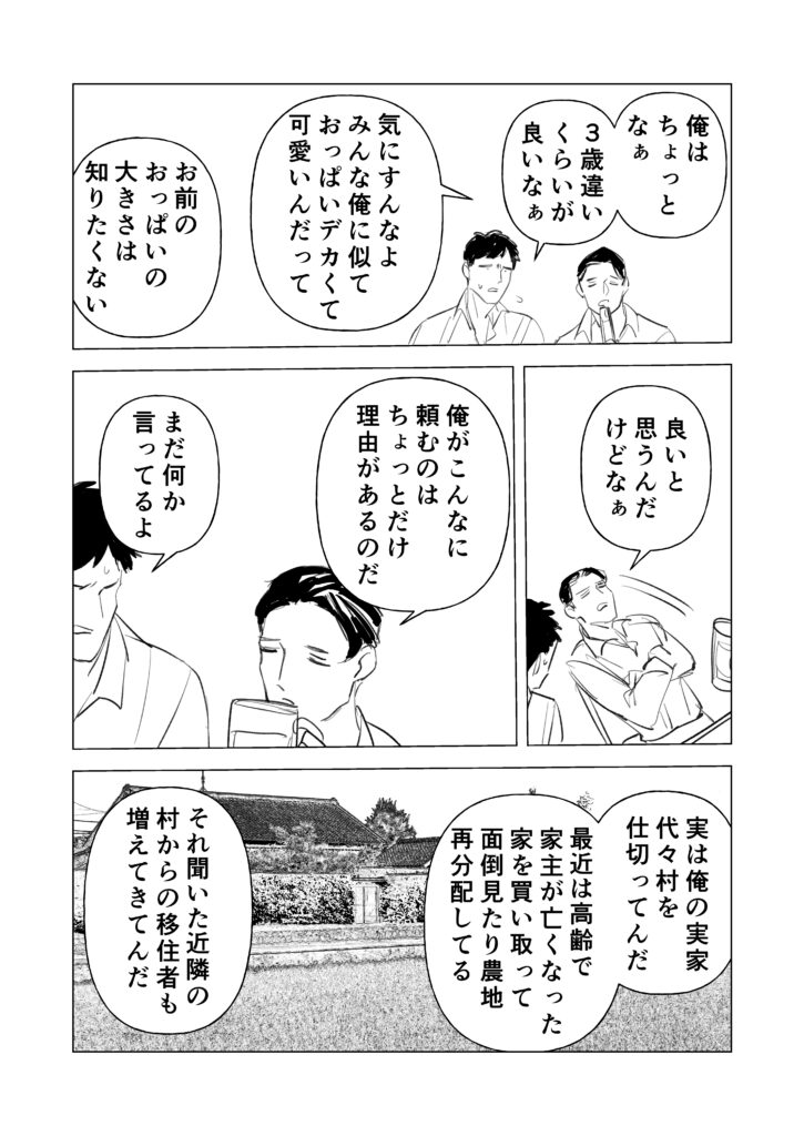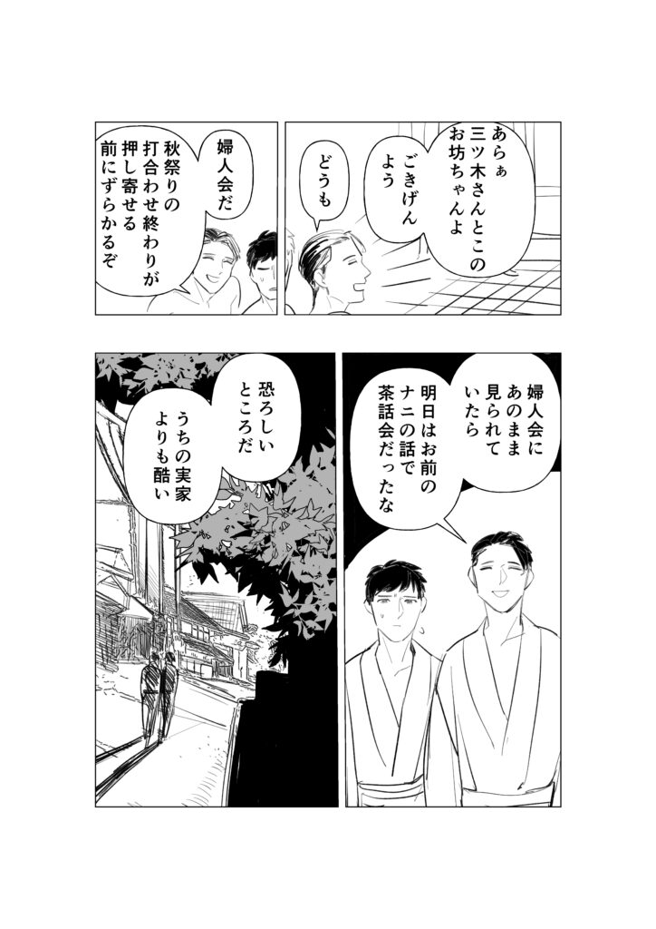サラリーマン(変態)×透明人間(村長)のBL(?)漫画です。